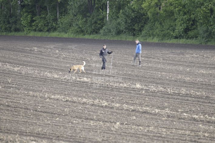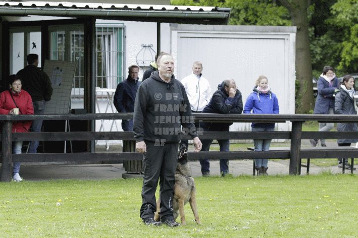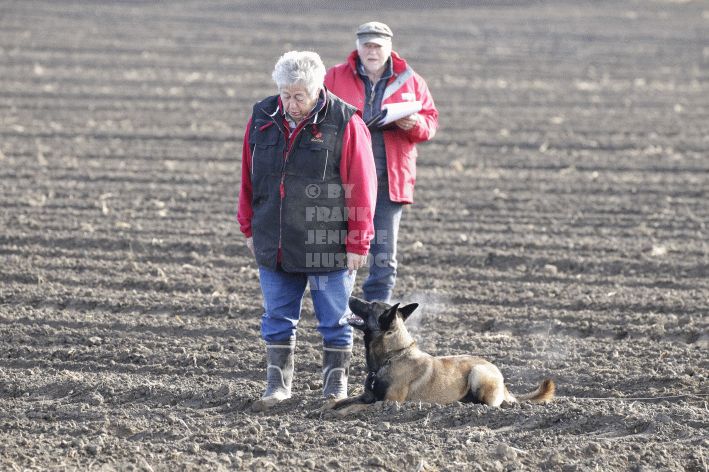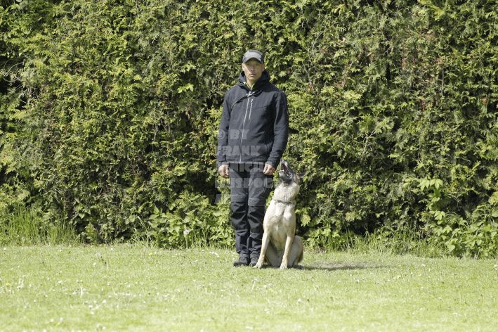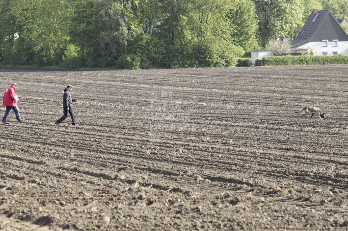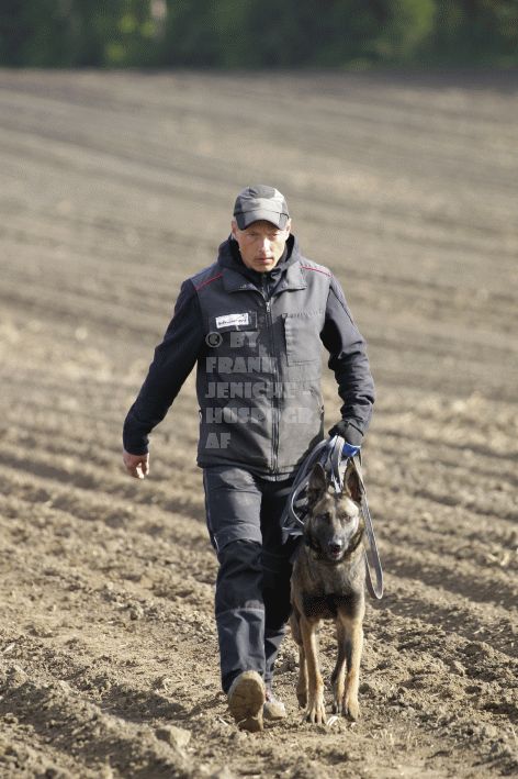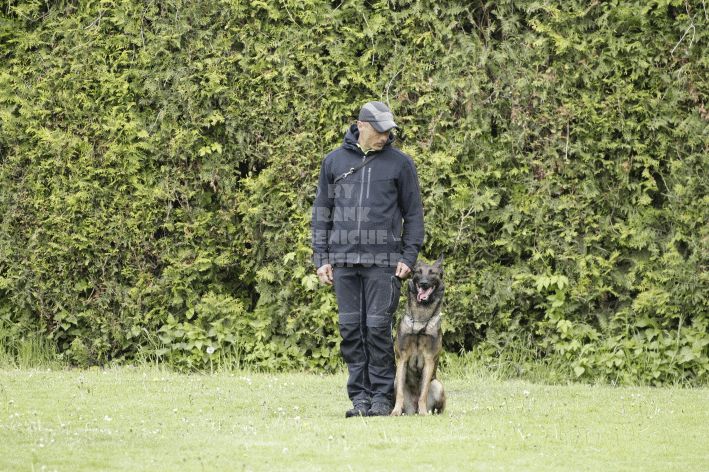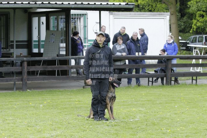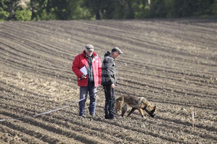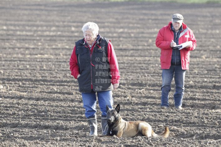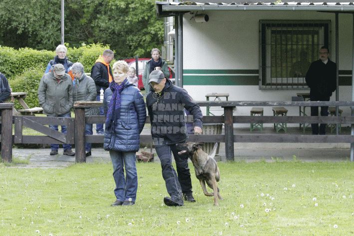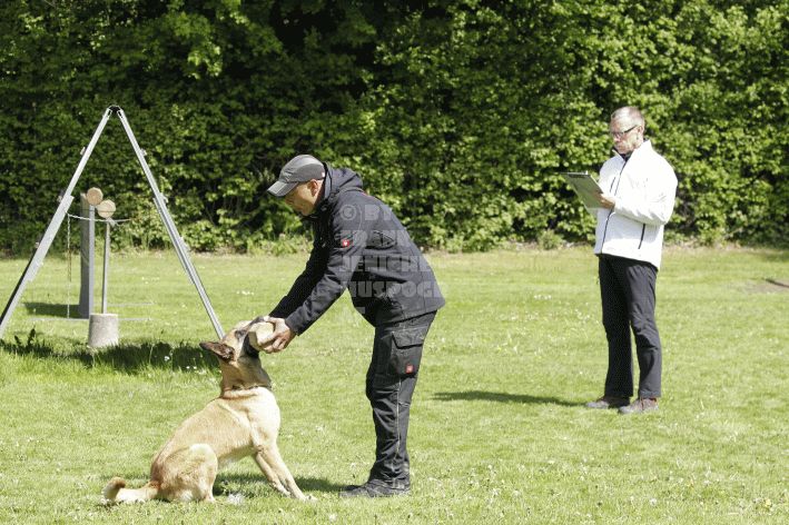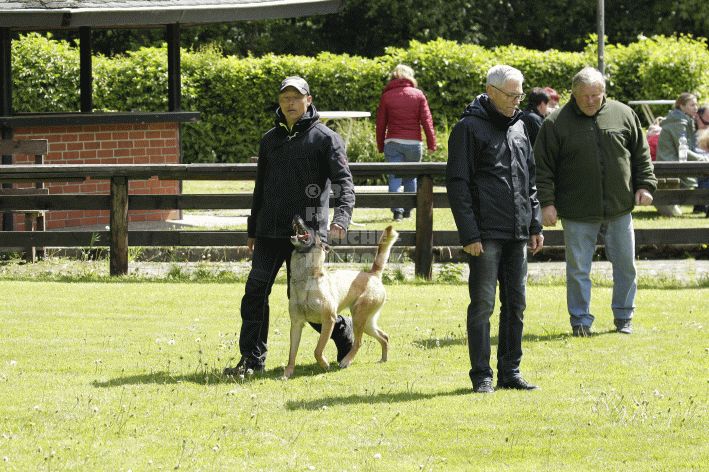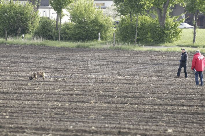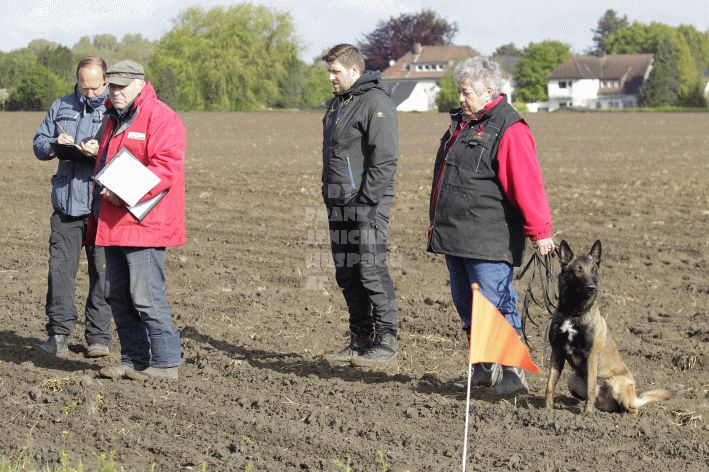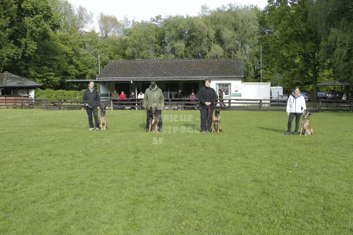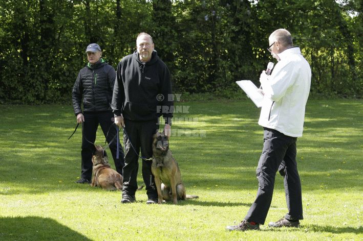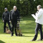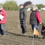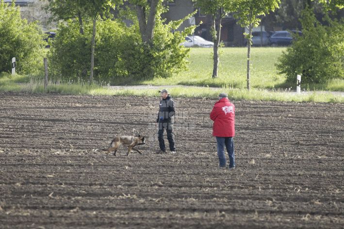 Die beiden Leistungsrichter Eberhard Uekötter und Martin Gugler teilten sich die Richterarbeit brüderlich. Dabei hatte Eberhard Uekötter wohl die längeren Wege zu gehen, richtete er doch die Abteilung A – Fährte. Als Fährtengelände hatte ein ortsansässiger Landwirt freundlicherweise einen großen, frisch eingesäten Acker mit einer Reihe von Traktorspuren zur Verfügung gestellt. Hier war auf alle Fälle genügend Platz für die 12 Fährten der Teilnehmer – und man hätte auch für weitere 10-15 Fährten „Luft“ gehabt. Martin Gugler war dann „Herr des Platzes“ für die Abteilungen B (Unterordnung) und C (Schutzdienst). Dabei wurde er von den beiden Schutzdiensthelfern Markus Klukas und Christian Förster unterstützt. Für den Fall der Fälle hielt sich mit Tim Zielske ein Reservehelfer bereit, der aber zum Glück nicht zum Einsatz kommen musste. Beide Schutzdiensthelfer zeigten eine faire und gleichmäßíge Arbeit auf gehobenem Niveau.