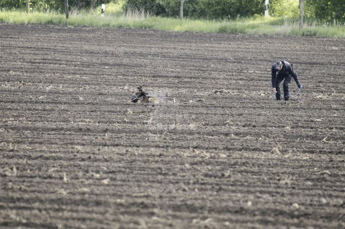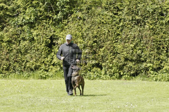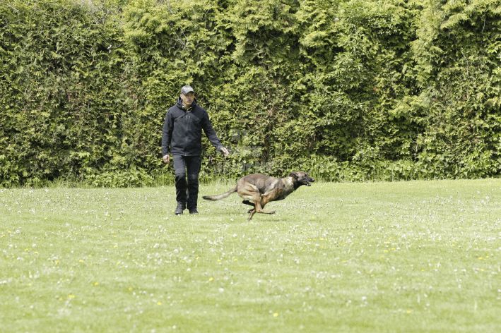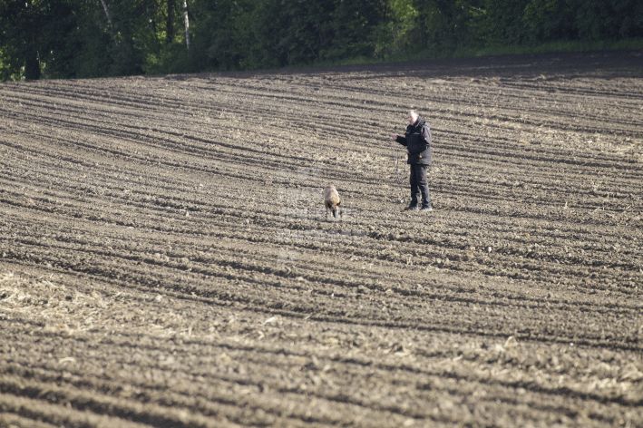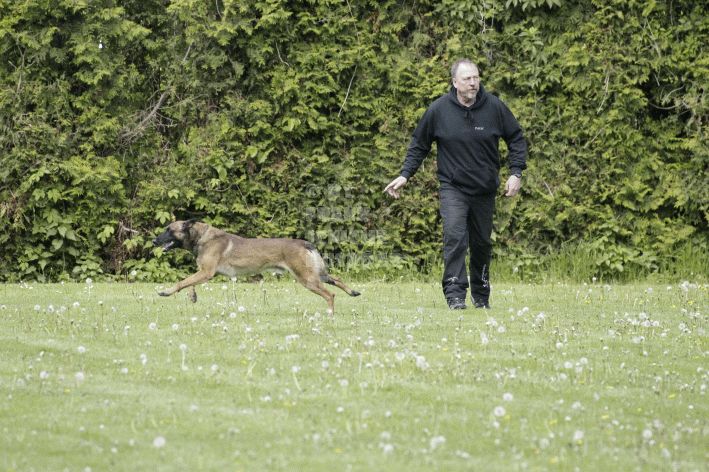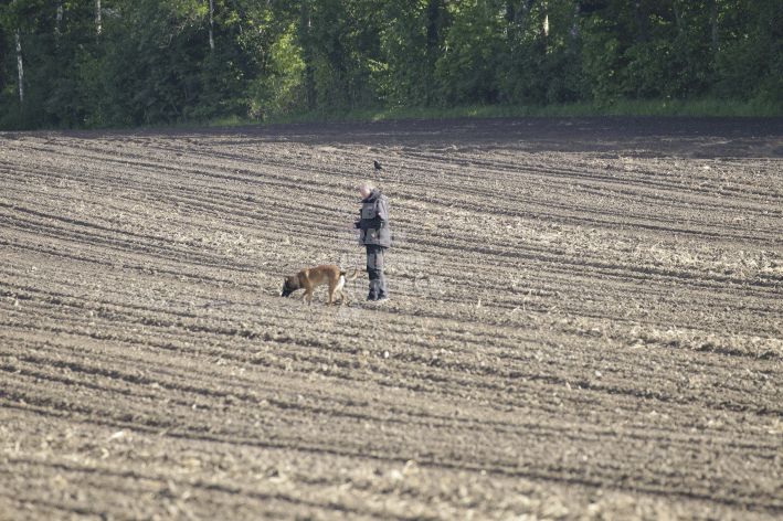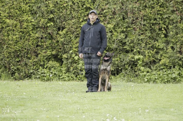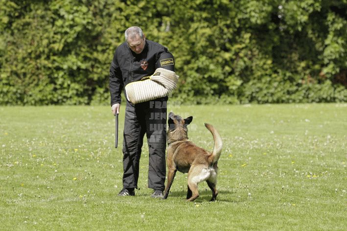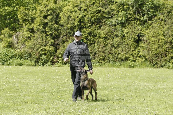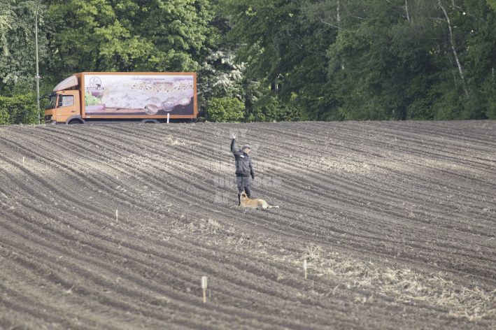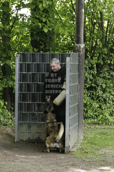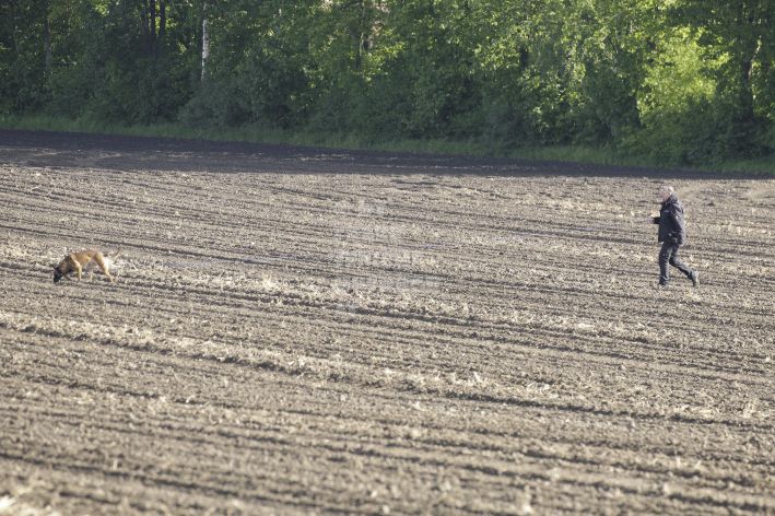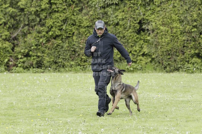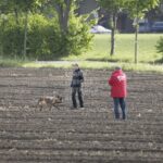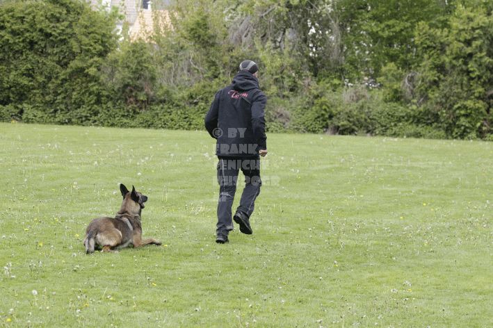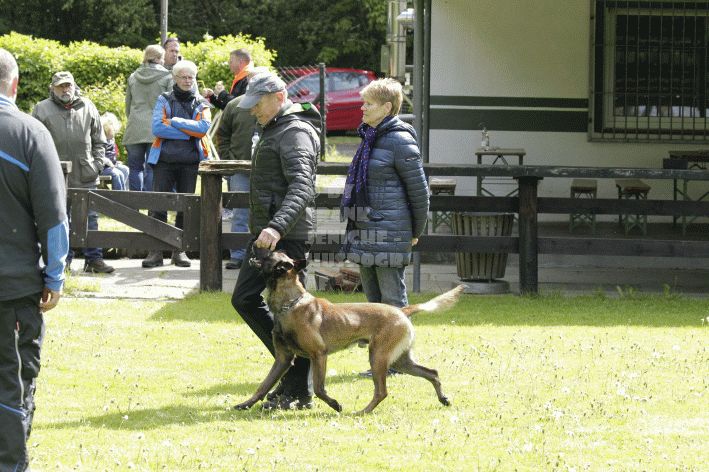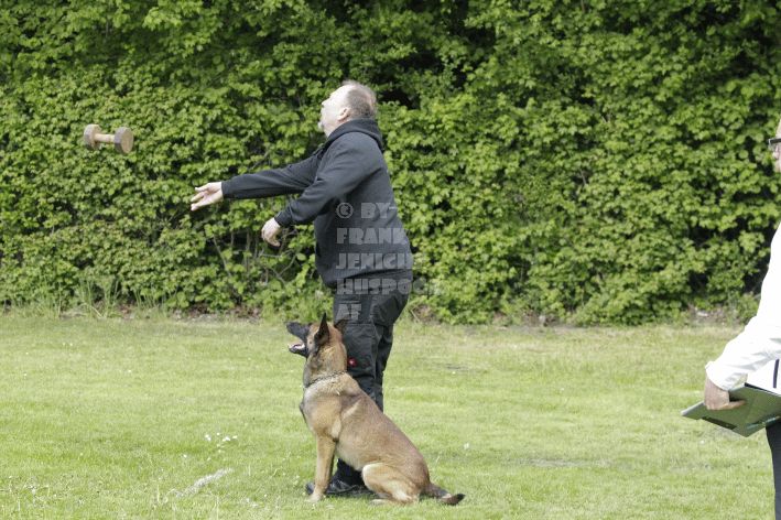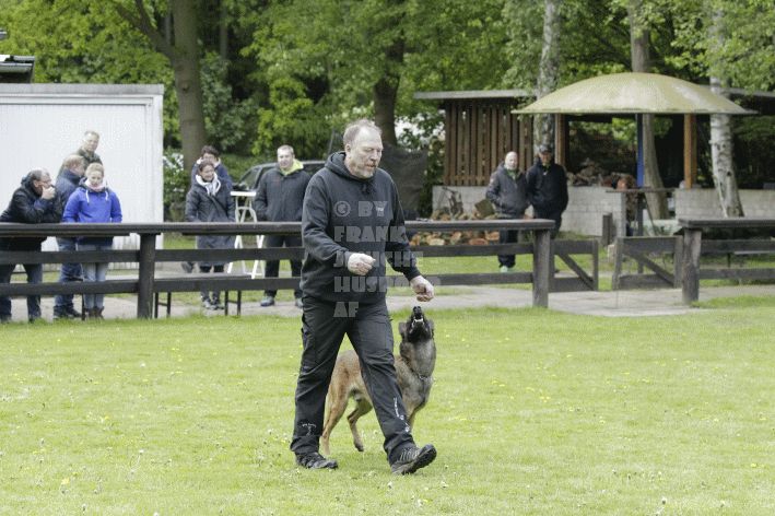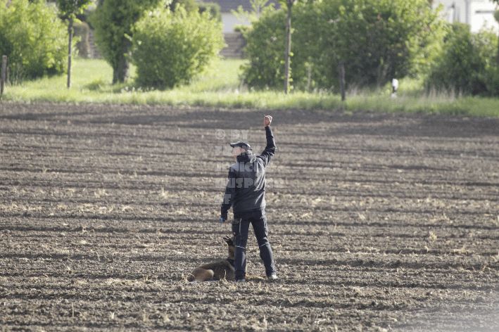 Die beiden Leistungsrichter Eberhard Uekötter und Martin Gugler teilten sich die Richterarbeit brüderlich. Dabei hatte Eberhard Uekötter wohl die längeren Wege zu gehen, richtete er doch die Abteilung A – Fährte. Als Fährtengelände hatte ein ortsansässiger Landwirt freundlicherweise einen großen, frisch eingesäten Acker mit einer Reihe von Traktorspuren zur Verfügung gestellt. Hier war auf alle Fälle genügend Platz für die 12 Fährten der Teilnehmer – und man hätte auch für weitere 10-15 Fährten „Luft“ gehabt. Martin Gugler war dann „Herr des Platzes“ für die Abteilungen B (Unterordnung) und C (Schutzdienst). Dabei wurde er von den beiden Schutzdiensthelfern Markus Klukas und Christian Förster unterstützt. Für den Fall der Fälle hielt sich mit Tim Zielske ein Reservehelfer bereit, der aber zum Glück nicht zum Einsatz kommen musste. Beide Schutzdiensthelfer zeigten eine faire und gleichmäßíge Arbeit auf gehobenem Niveau.