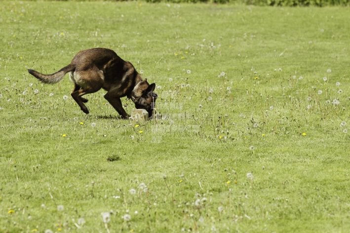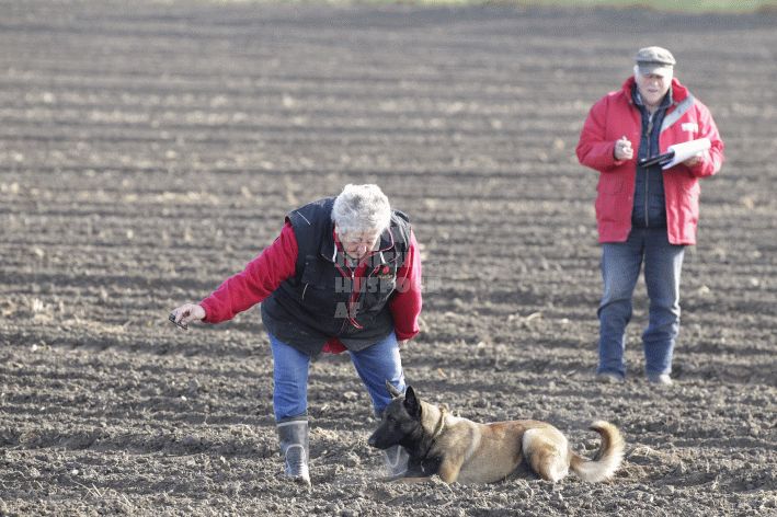 Bereits am frühen Samstagmorgen zog Eberhard Uekötter mit seinen Fährtenlegern los – und pünktlich um 9:00 Uhr ging es dann mit den ersten Fährten los. Bei sonnigem, aber kaltem Wetter mit nur geringer Luftbewegung zeigten die ersten Hunde teils gute Leistungen. Leider kamen aber nicht alle Vierbeiner erfolgreich am Ende ihrer Fährte an. Die beste Fährte des Tages suchten Tanja Cramer und ihr Malimaniac´s Davy Jones mit der Maximalausbeute von 100 Punkten. Fadia Schellberg mit ihrem Tervueren Farrel Deabei legte mit 99 Punkten nach und auch Katharina Willmann war mit ihrem Malinois Santanasangel´s B´Alpha und 96 Punkten gut dabei.